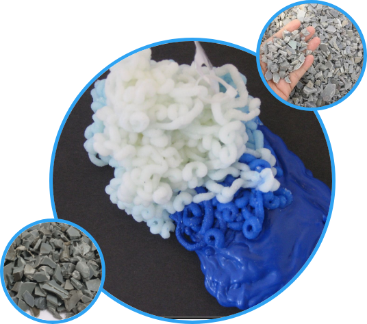 Water bottles, soft drink bottles, Salad dressing bottles, Peanut butter jars, Jelly jars, Bean bags, Medicine jars, Combs, Rope, Tote bags, Carpet, Fiberfill material in winter clothing, etc.Some tote bags, Plumbing pipes, Grocery bags, Tile, Cling films, Shoes, Gutters, Window frames, Ducts, Sewage pipes, etc.